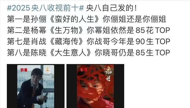 尤其是孙俪的《蛮好的人生》,拿到了2025年央8收视率第一。