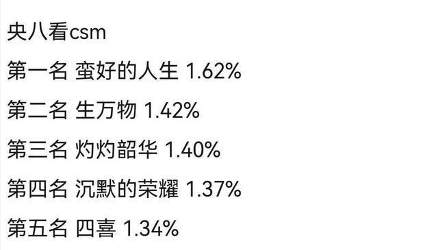这剧不仅入了央八电视剧收视率前十,而且还是第一的水平。